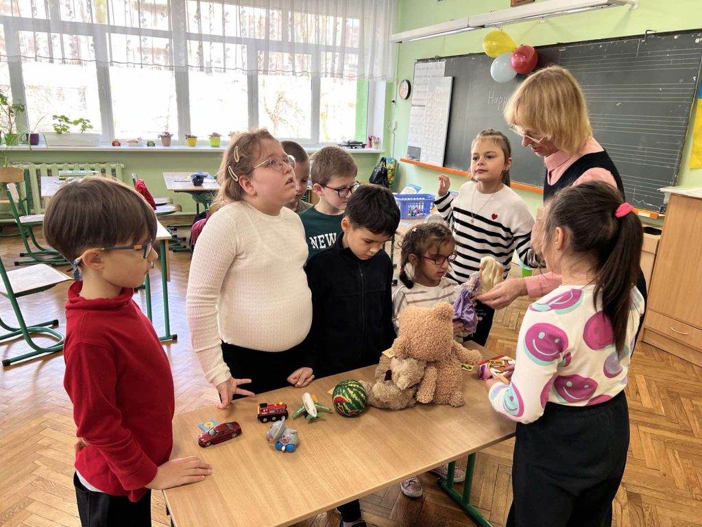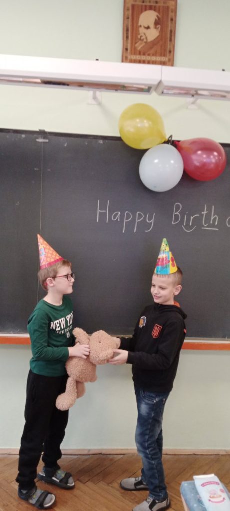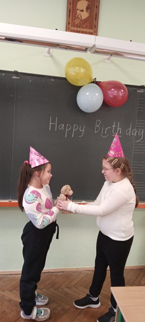 Не менш цікавою стала гра на відгадування — учні намагалися визначити, який подарунок схований у портфелі. Завершився урок творчим завданням: діти створювали власні вітальні листівки з побажаннями до Дня народження.
